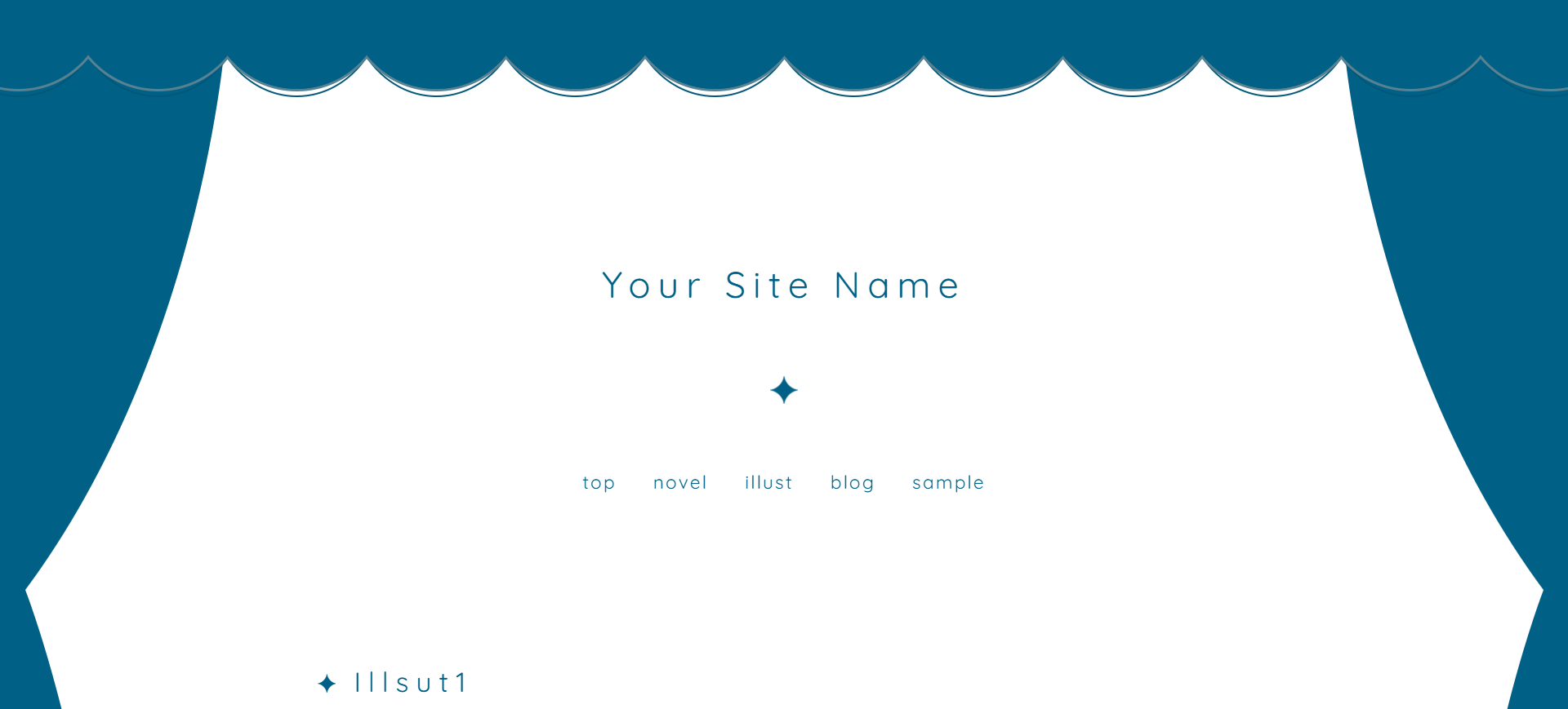 シンプルに、モチーフにカーテン(舞台)、カラーは青緑か紺、というでリクエストで作成したもの。