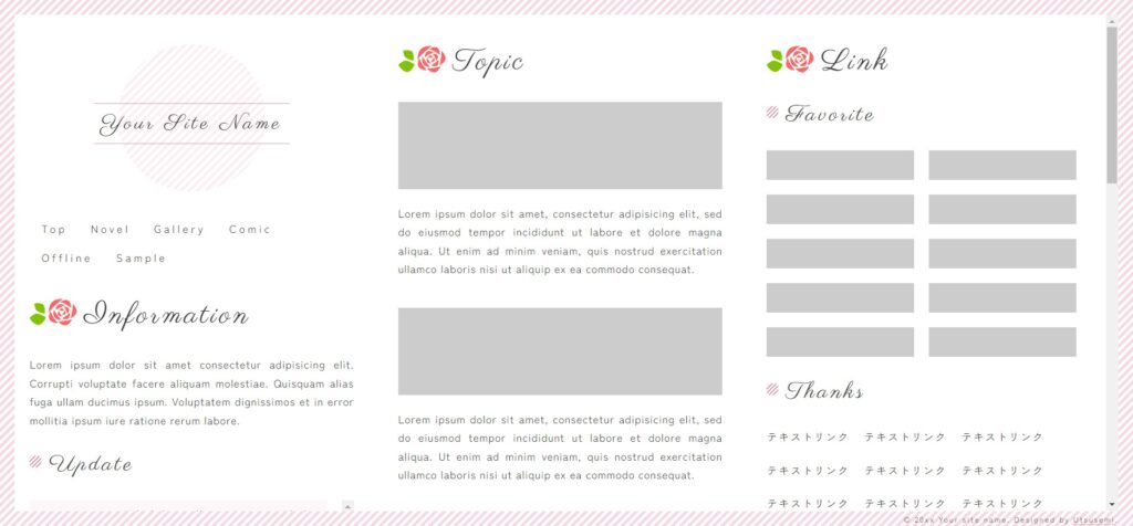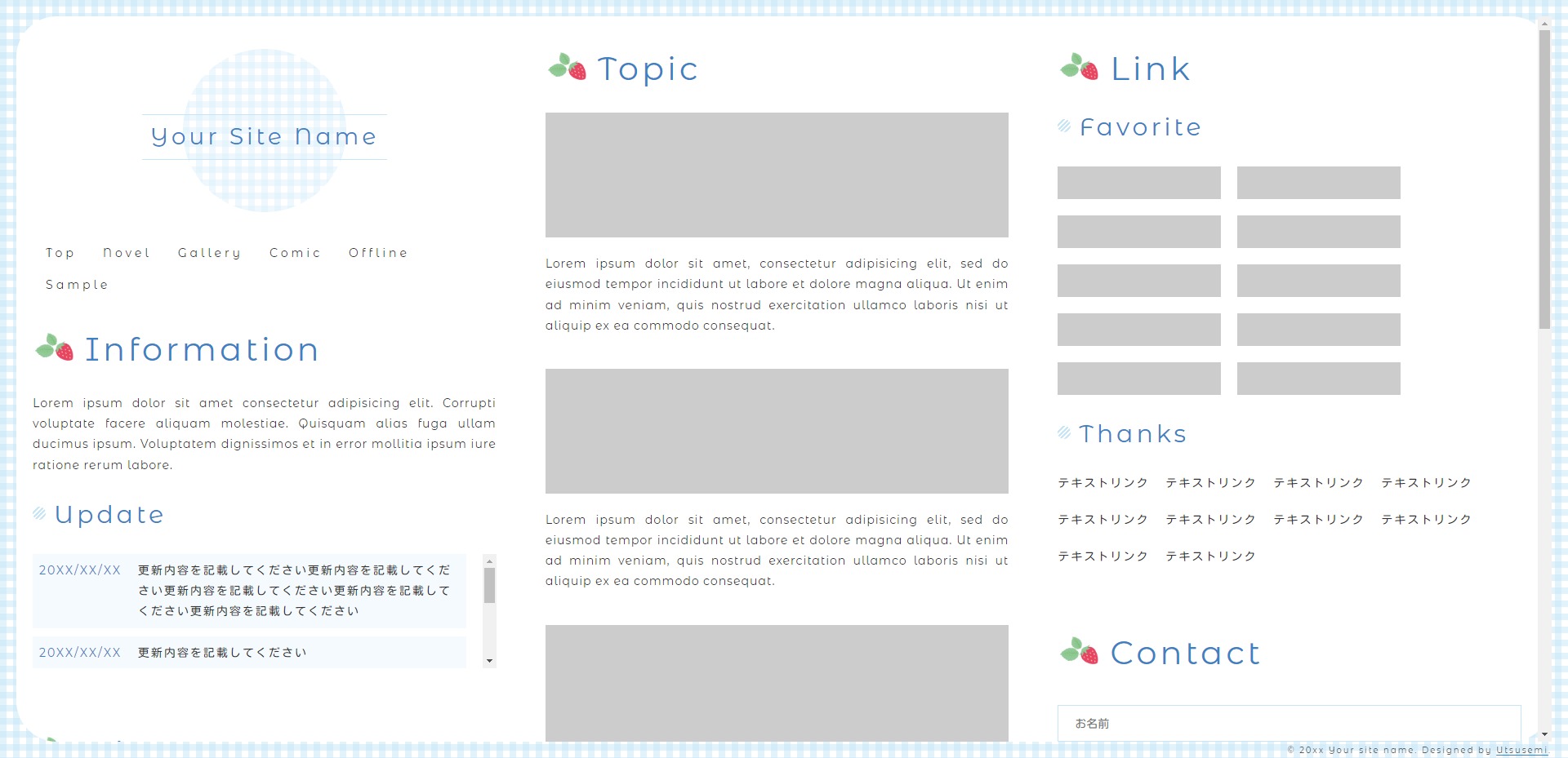 ギンガムチェックといちごをテーマにした3カラムのテンプレートです。