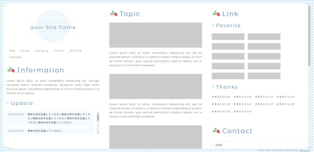 もともとはコンテンツの少ない、1ページで完結するようなサイト向けに作ったものでしたが、小説やイラスト展示などのコンテンツを展示できるものにリメイクしました。