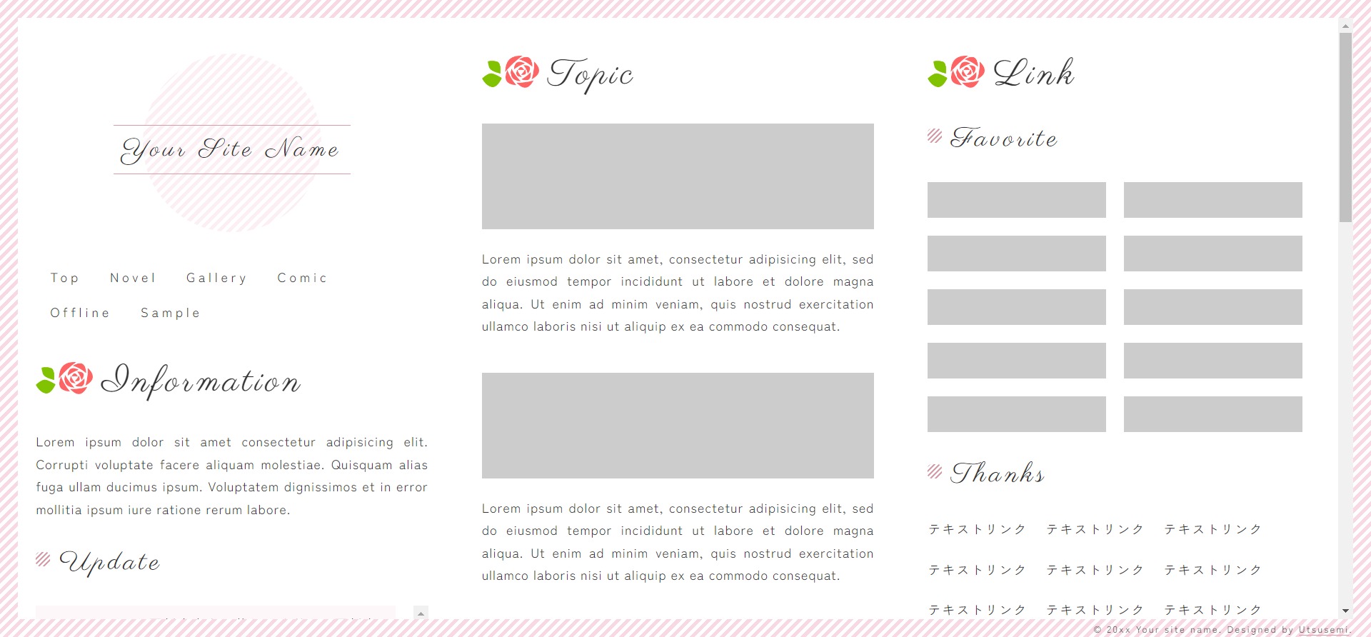 ストライプとバラをテーマにした、3カラムのテンプレートです。
