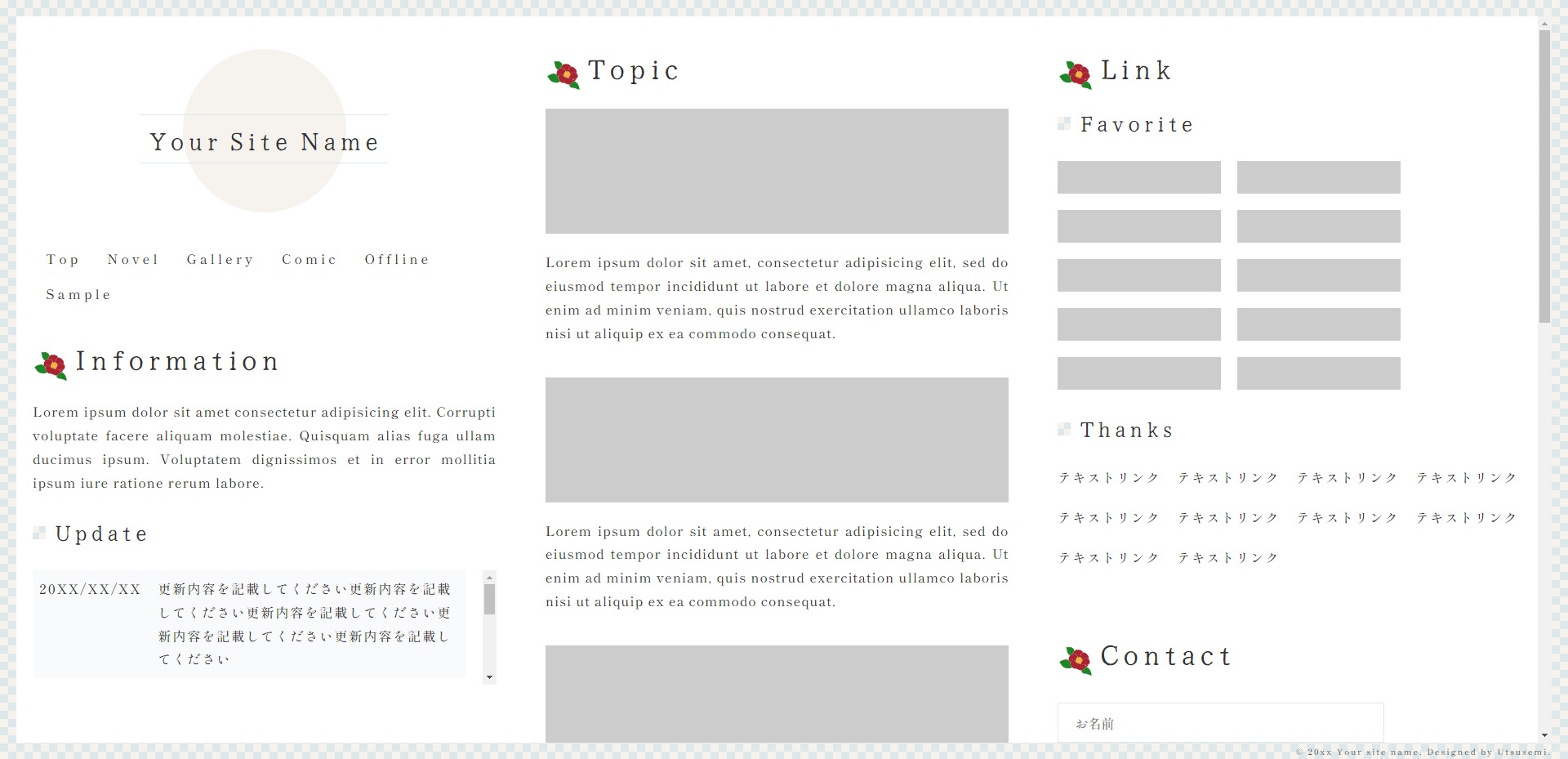 市松模様と椿をテーマにした、3カラムのテンプレートです。