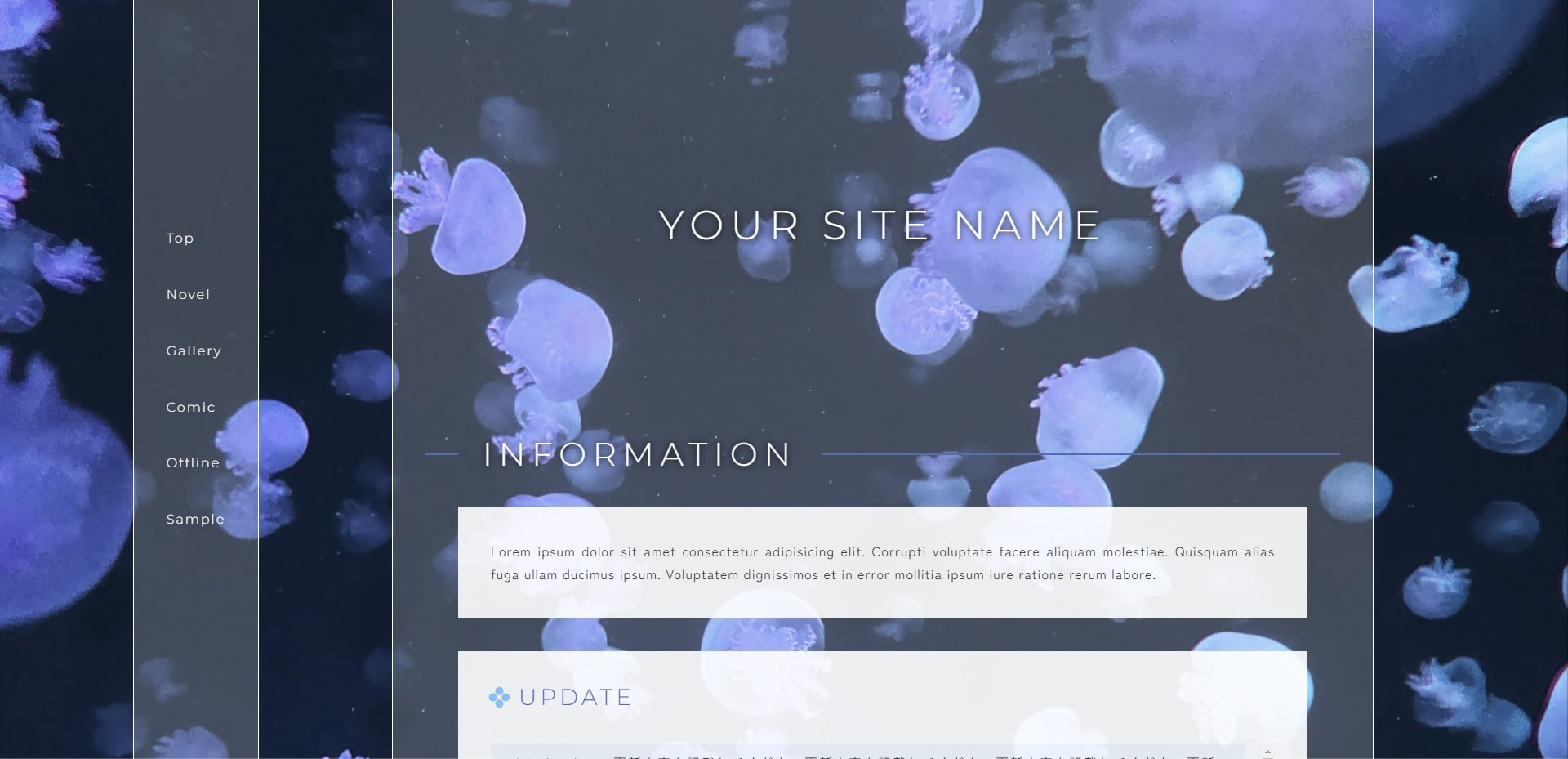 くらげの写真を全面背景にした、2カラムのテンプレートです。