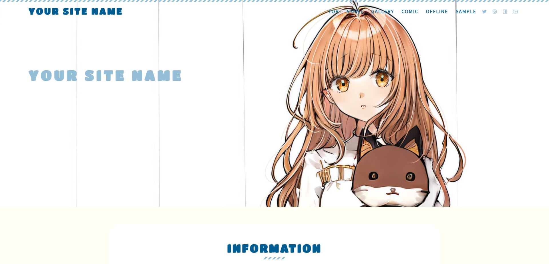 トップページは画面全体にメイン画像が表示される仕様なので、どちらかというと写真やイラストのギャラリーサイトを想定しています。