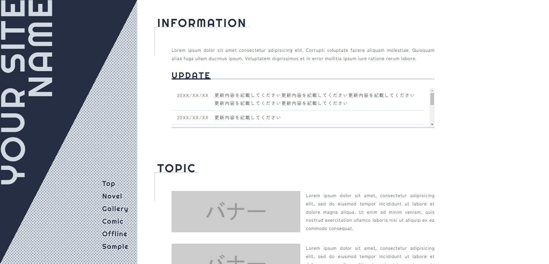 直線とツートンカラーがテーマの、2カラムのテンプレートです。